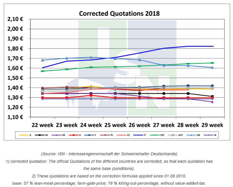 隨著大量游客蜂擁至歐洲南部國(guó)家,這些地方的夏季燒烤正如火如荼。因此,肉類需求依然維持在高位。西班牙生豬價(jià)格小幅上漲。與過(guò)去數(shù)周相比,歐洲其他國(guó)家的生豬價(jià)格變化不大,幾乎沒(méi)有變。隨著氣溫繼續(xù)變暖,待宰豬數(shù)量保持低位,屠宰量下降,胴體體重同樣減輕。奧地利上周胴體重量低于96.5公斤?;铙w市場(chǎng)依然在等待收購(gòu)價(jià)格上漲,屠企繼續(xù)壓價(jià)。