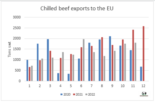 冰鮮牛肉對(duì)歐盟出口量連續(xù)第五個(gè)月同比下降