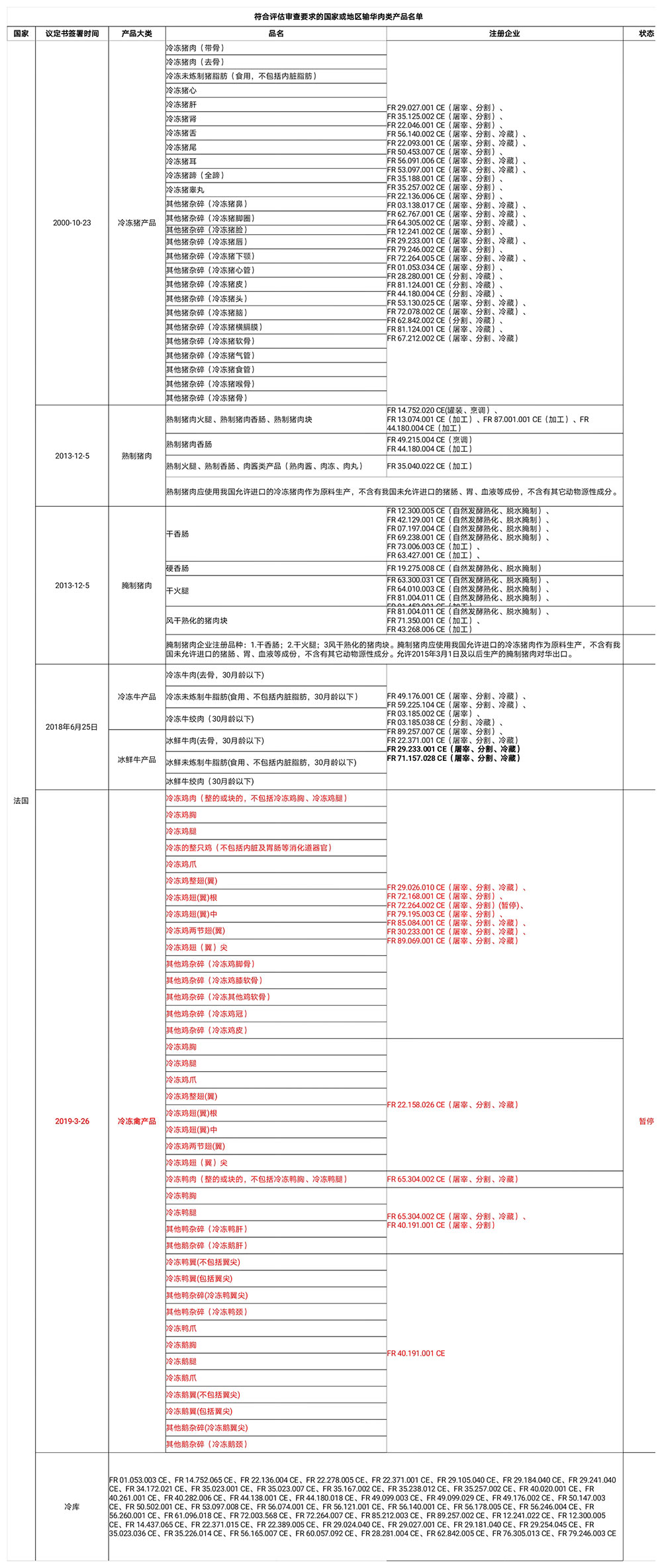 FR 01.452.001 CE等14家企業(yè)自2023年3月28日起啟運的輸華豬肉產(chǎn)品進口申報。