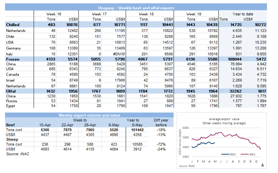 每周的屠宰量排名由Frigorífico Las Piedras(4,982頭)、Frigorífico