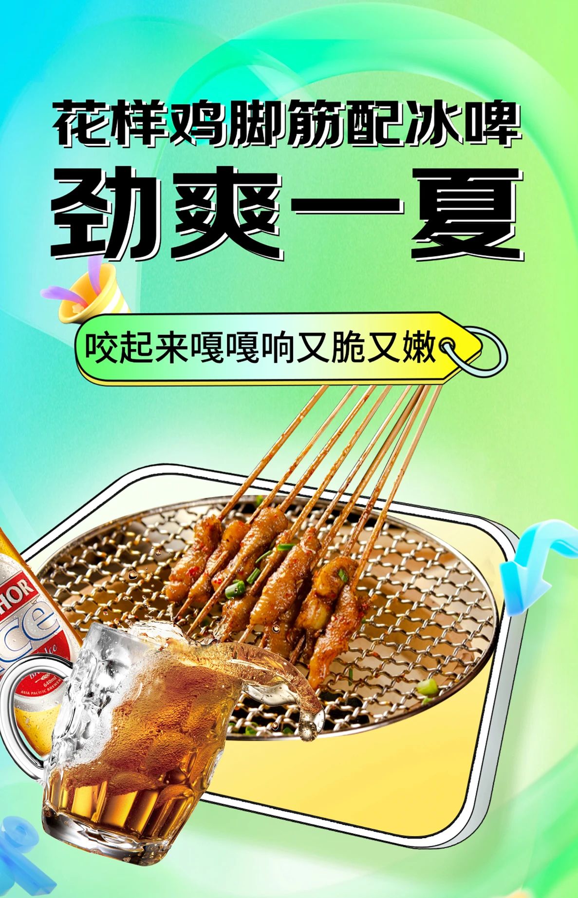 在夏日的晚風(fēng)中感受或熱血、或悠然、或放空的時(shí)光。一桌燒烤、一鍋串串,少不了雞腳筋的勁爽加持,配上一杯啤酒或清茶,便是人間好夢長。