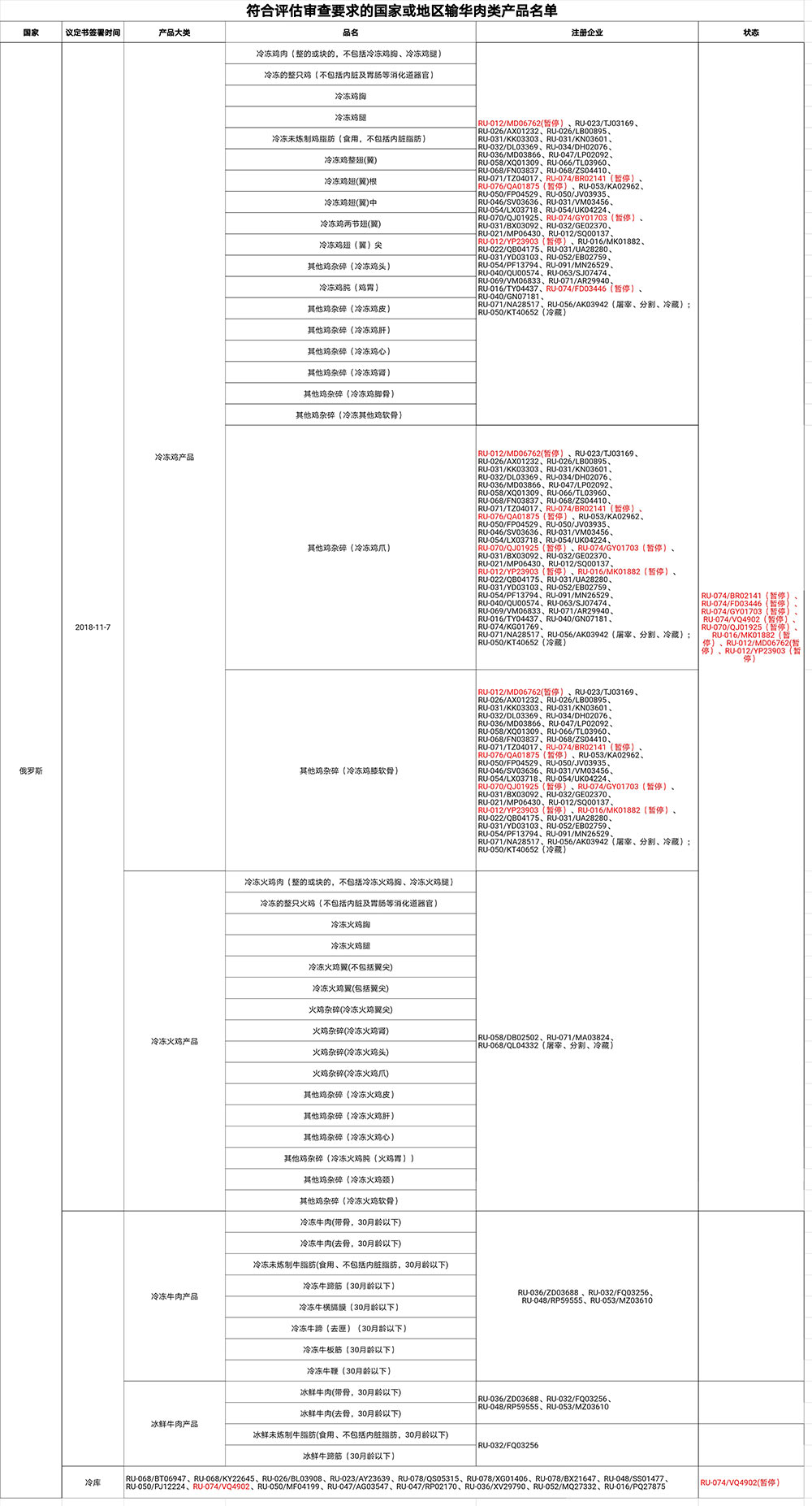 符合評估審查要求的國家或地區(qū)輸華肉類產品...