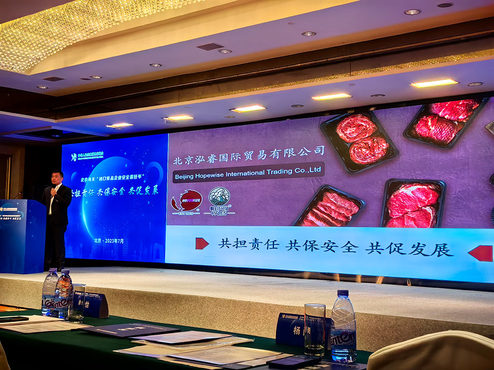 北京泓睿國際貿(mào)易有限公司總經(jīng)理楊勇作為企業(yè)代表發(fā)言,楊勇表示:北京泓睿國際貿(mào)易有限公司,是一家專注于全球優(yōu)質肉品進口、加工、分銷、新零售全鏈條解決方案供應商,公司業(yè)務涉及豬、牛、禽肉三大品類。結合中國肉類食品、餐飲、新零售等行業(yè)發(fā)展需求,我司建立了全新的肉類食品加工基地,采用先進的設備,實現(xiàn)自動化生產(chǎn),可提供安全標準、品質穩(wěn)定的定制化進口肉品解決方案。