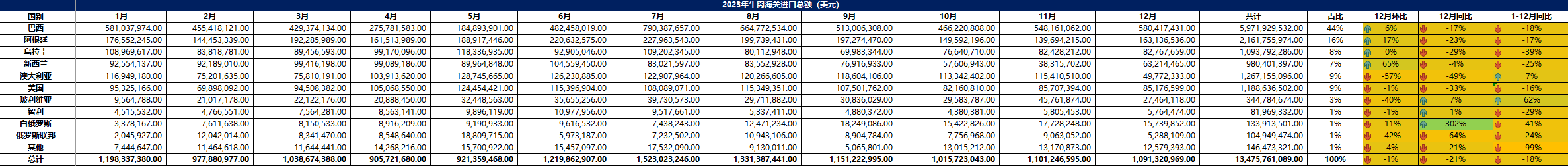 2023 年 12月冷凍禽肉進(jìn)口概況