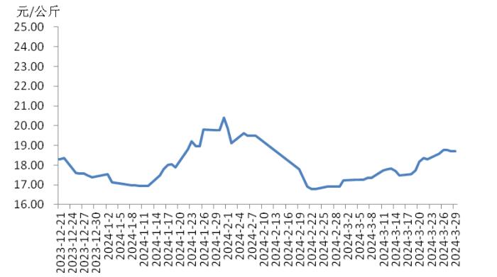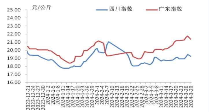 本周,四川豬肉周均價(jià)為每公斤19.24元,環(huán)比上漲1.5%,同比上漲5.9%,同比漲幅擴(kuò)大3.7個(gè)百分點(diǎn)。周前期,川內(nèi)散養(yǎng)戶出欄生豬的節(jié)奏較穩(wěn)定,但豬源外調(diào)出川的數(shù)量增多,使得川內(nèi)生豬及豬肉供應(yīng)偏緊,疊加豬肉經(jīng)銷商積極采購,推動(dòng)豬肉價(jià)格上漲。周后期,消費(fèi)市場對(duì)高價(jià)豬肉需求量減少,客戶訂單量減少,豬肉價(jià)格小幅回落??傮w看,本周四川地區(qū)豬肉周均價(jià)環(huán)比小幅上漲。