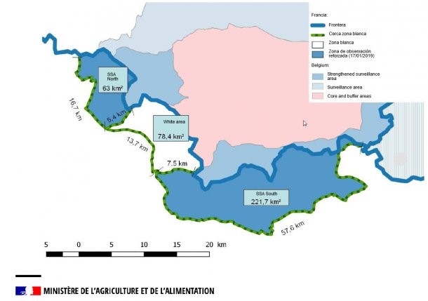 方圓78公里的“白色地帶”是離比利時最新ASF疫情最近的地方。另外第四周要建一個長26.6公里的圍欄。自1月19日起,為減少ASF疫情擴(kuò)散,禁止從事林業(yè)經(jīng)營(無論是經(jīng)濟(jì)活動還是休閑活動)。將通過獵人、國家狩獵和野生動物辦事處和國家森林辦事處鼓勵大規(guī)模捕獵,減少野豬數(shù)量。國家每捕殺一頭野豬補(bǔ)貼獵人100歐元。