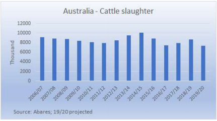 澳洲牛只屠宰量、牛肉產(chǎn)量和出口量2019/20年將會(huì)減少