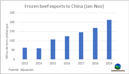 11月烏拉圭冷凍牛肉出口量的86%流向中國市場