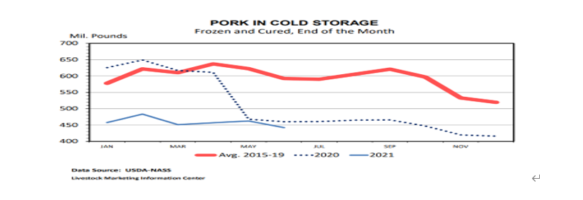 由于德爾塔變異病毒影響,市場整體低迷,消費受限,豬肉庫存消耗緩慢,預(yù)計8月豬價持續(xù)低位徘徊。