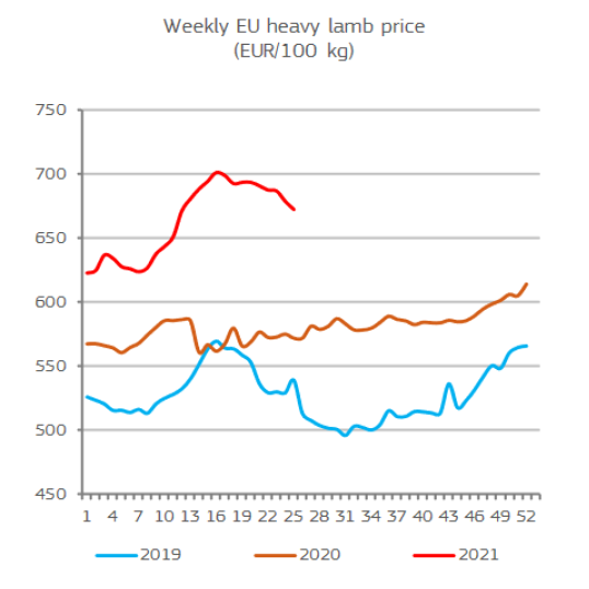 歐盟委員會預(yù)估,隨著歐洲國家餐飲服務(wù)機構(gòu)的逐步開放,2021年牛肉進口量預(yù)計將增長8%。但今年年初牛肉進口量同比下降,由于餐飲門店關(guān)閉和全球市場牛肉短缺導(dǎo)致歐盟需求下降,1-3月歐盟牛肉進口量同比下降了13%。英國和巴西將出口轉(zhuǎn)向了亞洲市場。由于來自英國和新西蘭的發(fā)運量減少,歐盟第一季度羊肉進口量下降了21%。由于運輸成本上漲和亞洲市場活躍,從新西蘭進口量下降了23%,歐盟相對較高的價格應(yīng)該會給今年下半年的進口增加一些空間,導(dǎo)致2021年進口僅減少8%。