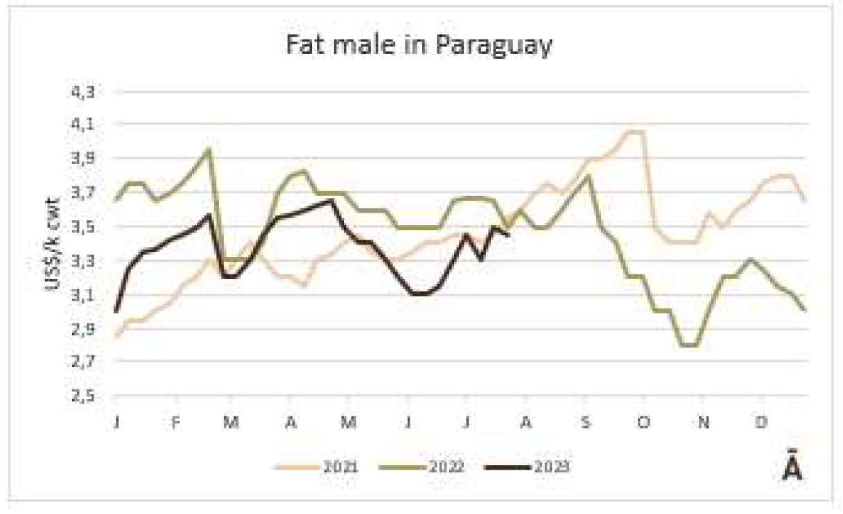 巴拉圭成品牛市場(chǎng)采購(gòu)價(jià)格下降,據(jù)一位消息人士稱,公牛屠宰盡管本周以每公斤酮體3.50美元的價(jià)格成交,母肥牛下周以3.15美元的價(jià)格成交,但新裝載量的價(jià)格降低了約10美分。