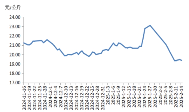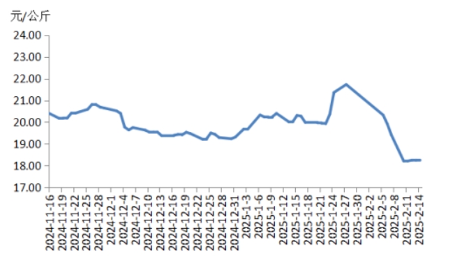 本周華中地區(qū)豬肉價格環(huán)比明顯下跌,周內(nèi)價格先跌后漲。前半周,規(guī)模養(yǎng)殖場的生豬出欄量增加,散養(yǎng)戶將春節(jié)節(jié)前壓欄豬源陸續(xù)釋放,使得生豬及豬肉供應(yīng)充沛,而豬肉消費表現(xiàn)一般,元宵節(jié)提振力度較弱,致使屠宰企業(yè)訂單銷售速度不快,豬肉價格明顯下跌。后半周,各院校開學(xué)后食堂訂單小幅增多,經(jīng)銷商采購積極性增加,帶動豬肉價格有所反彈,幅度有限??傮w看,本周華中地區(qū)豬肉周均價明顯低于上周。